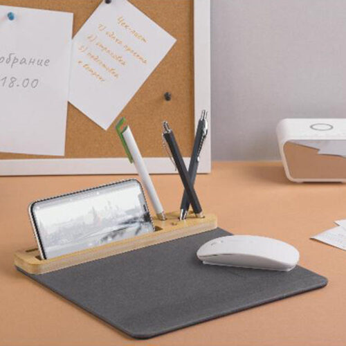 - Integrate pen/note storage into the bamboo module (instead of plastic) to elevate aesthetic value, while the fabric mouse pad ensures core performance.