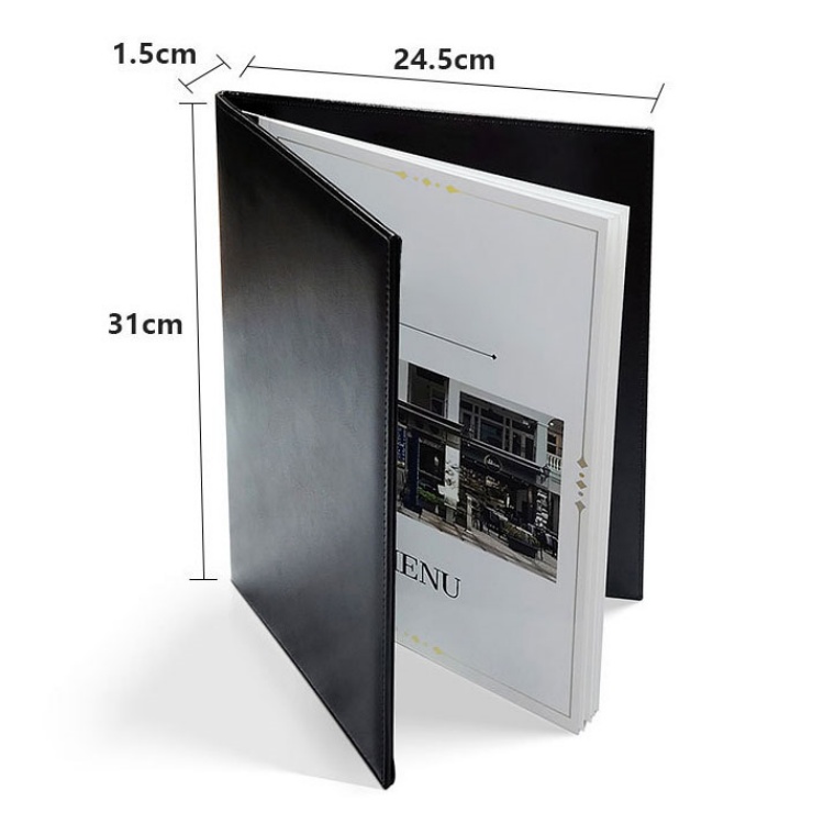 Our black leather menu binder is a practical F&B accessory tailored for B2B buyers. Crafted from premium durable leather (scratch-resistant, easy to clean) with a removable page design (metal rivet fasteners), it lets you swap menus quickly without replacing the entire binder – reducing long-term costs. The sleek black leather elevates restaurant/bar ambiance, fitting upscale or casual dining themes. As a supplier to global brands (e.g., Walmart, Coca-Cola), our products pass CE/ROHS certifications, ensuring bulk order quality. Fully customizable: add custom logos (embossing/printing on leather), adjust page sizes (fits 24.5×31cm menus), and enjoy full OEM/ODM support. It’s perfect for restaurant menu displays, bar drink lists, or F&B corporate gift kits.
