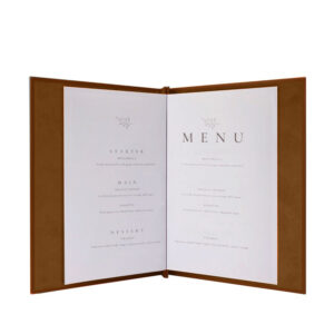 Our brown leather menu folder is a sleek F&B accessory tailored for B2B buyers. Crafted from premium durable leather (scratch-resistant, easy to clean), it features a loose-leaf design (metal rivet fasteners) that lets you swap menus quickly without replacing the entire folder – cutting long-term costs. The warm brown leather elevates restaurant ambiance, while custom logo embossing (e.g., “MENU” as shown) strengthens brand identity. As a supplier to global dining brands, our products pass CE/ROHS certifications, ensuring bulk order quality. Fully customizable: choose leather colors (brown + Pantone options), adjust sizes (fits A4/letter menus), add custom logos (embossing/printing), and enjoy full OEM/ODM support. It’s perfect for restaurant menu displays, café drink lists, or F&B corporate gift kits.