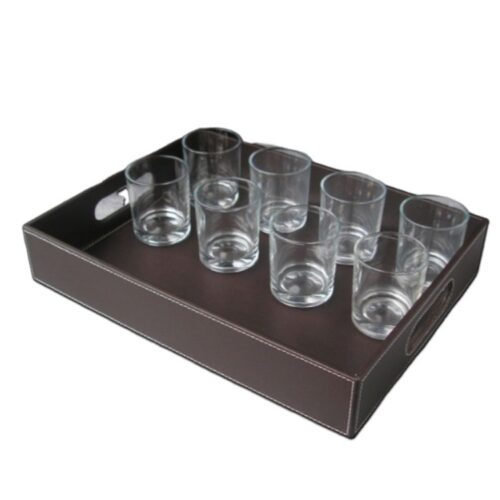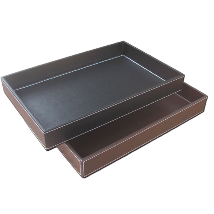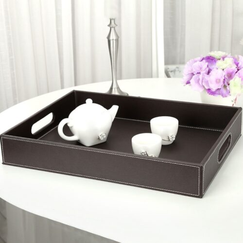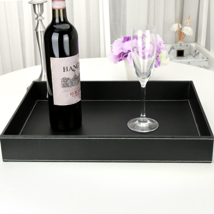 Our leather serving tray is a practical beverage accessory tailored for B2B buyers. Crafted from premium durable leather (anti-slip, scratch-resistant) with reinforced handles and neat contrast stitching, it safely holds drinks, teaware, or tableware – preventing spills during serving. The leather material also protects table surfaces from scratches, fitting restaurants, hotels, and home dining scenarios. As a supplier to global brands (e.g., Walmart, Coca-Cola), our products pass CE/ROHS certifications, ensuring bulk order quality. Fully customizable: choose from colors (black-brown as per product images) via Pantone selection, adjust sizes (standard: 40×25×5cm), add custom logos (embossing/printing on leather), and enjoy full OEM/ODM support. It’s perfect for restaurant beverage service, hotel room amenities, or corporate gift kits.